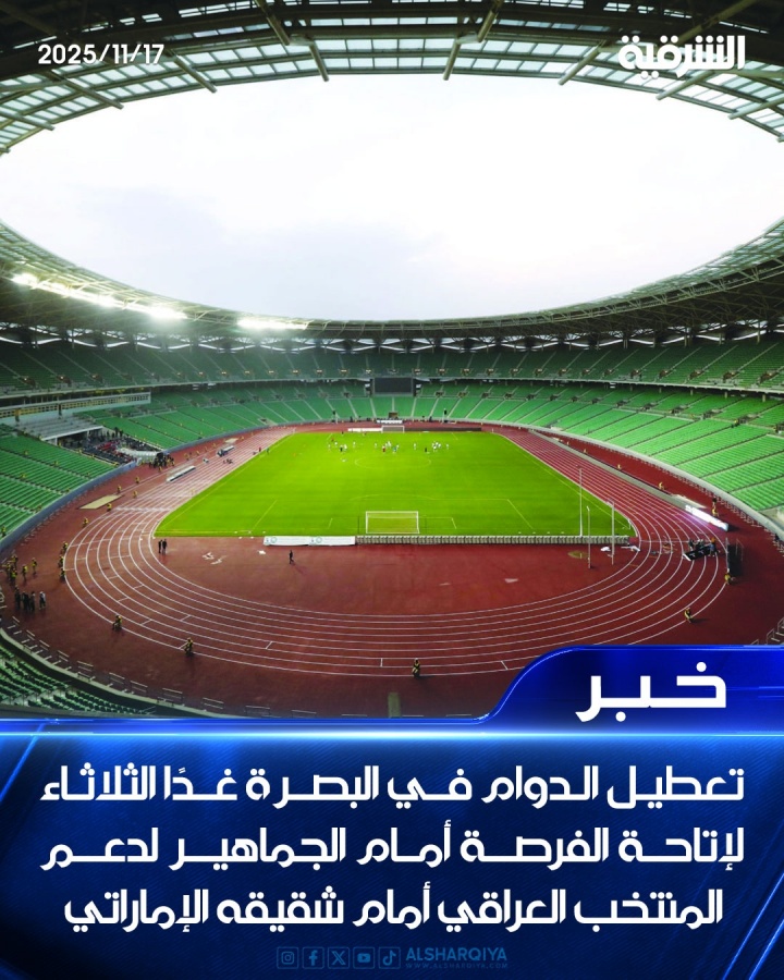 11月17日讯 据伊拉克沙尔吉亚电视台报谈,来日,伊拉克将在巴士拉省迎来与阿联酋的附加赛限额争夺战,巴士拉省来日将停工停课休假一天,以便球迷们好像复旧伊拉克国度队与阿联酋的比赛。