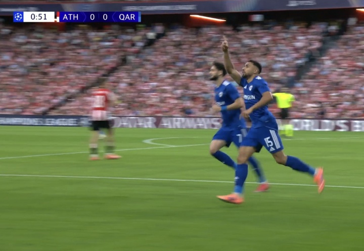 毕巴开场丢球!在3场欧战第1分钟破门,卡拉巴赫时尚是历史首东说念主