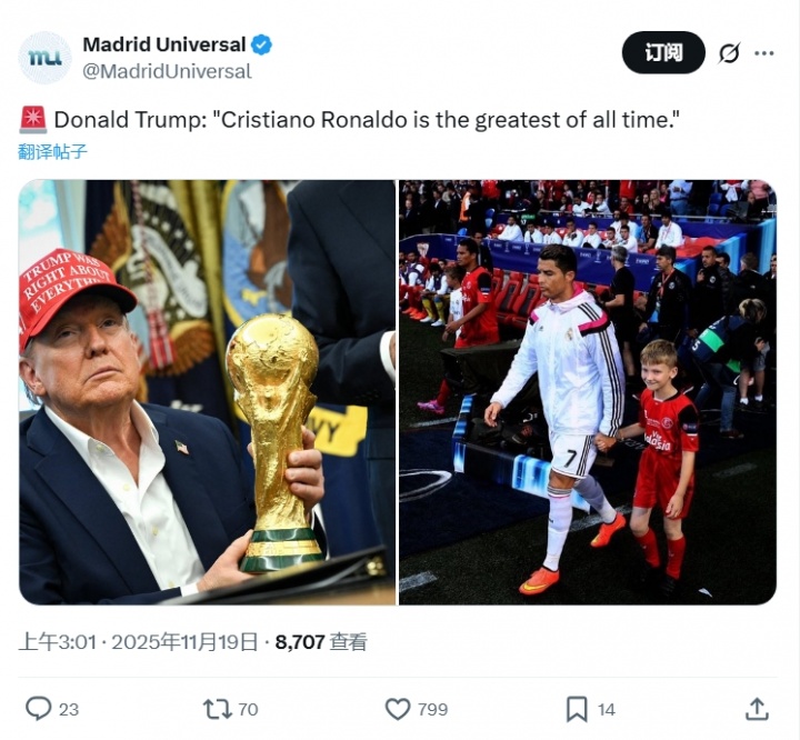 网传特朗普称C罗是历史最好,此讯息暂无可靠起首阐述