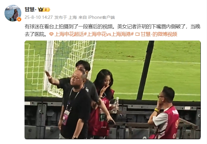 跟队:申花女记者赛后与海港东谈主员冲破,导致下嘴唇内侧破了去病院
