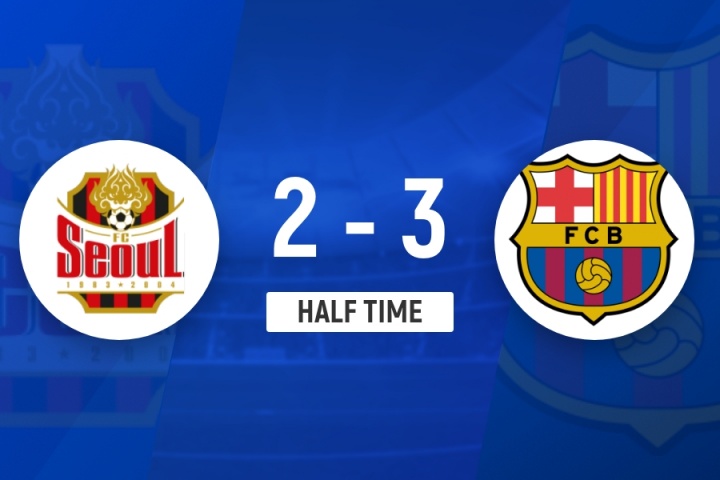 上半场比赛为止,巴塞罗那3-2首尔FC。