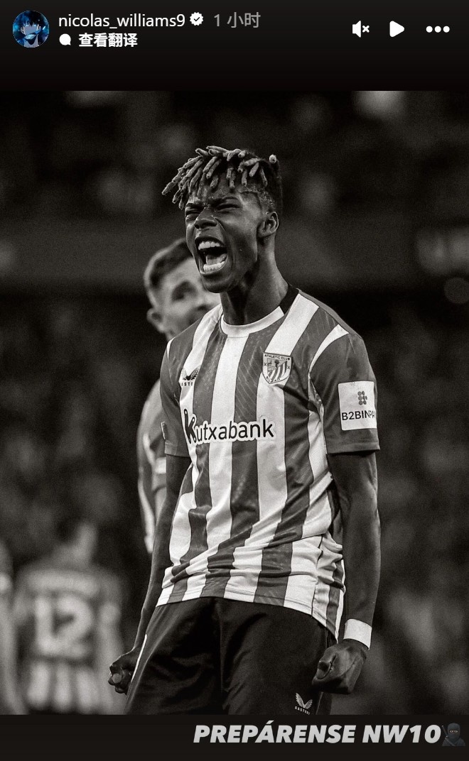 他在当天晒出我方的咆哮庆祝照,并配文:“作念好准备。尼科-威廉姆斯10”。