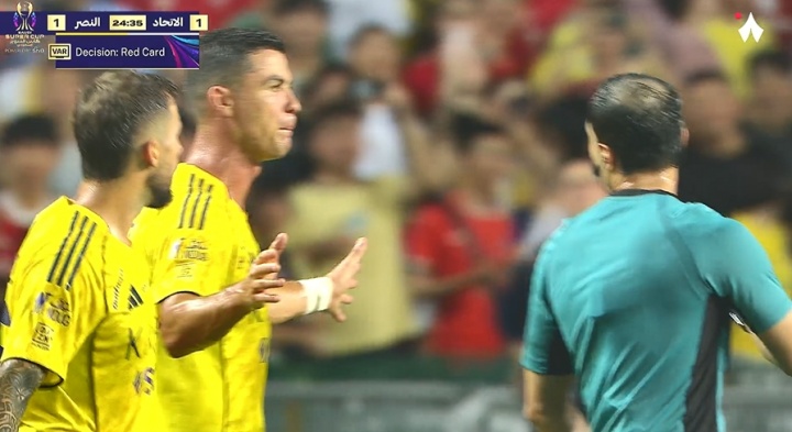 马内被直红罚下,队长C罗对判罚感到相配不悦!
