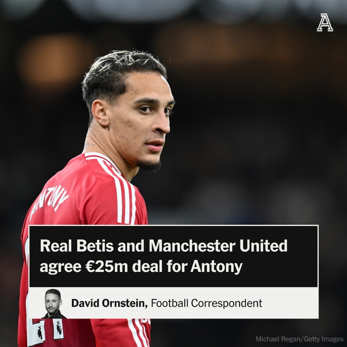 TA:曼联与贝蒂斯就安东尼转会达公约!转会费2500万欧+50%二转