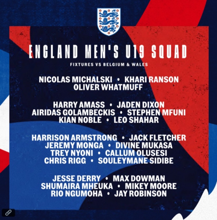 英格兰U19队名单:15岁谈曼、尼奥尼、恩古莫哈、杰克-弗莱彻入围