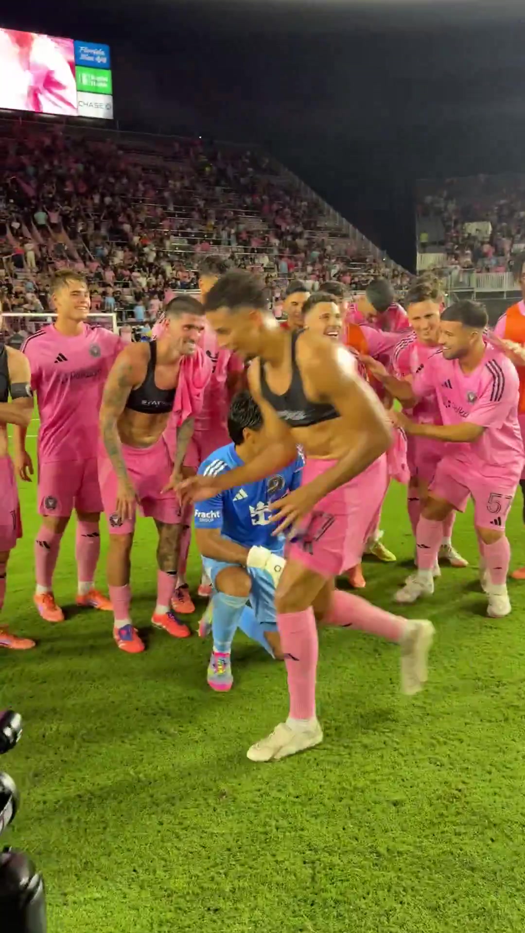 阿尔巴首发出战,助攻阿连德破门,此役是他为迈阿密国出门战的第100场比赛,阿尔巴获赠100场顾忌球衣,并与队友合影庆祝。