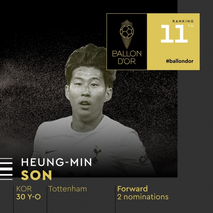 此外,孙兴慜在2022年名次金球奖第11位,现在仍是亚洲球员赢得过的历史最高名次。
