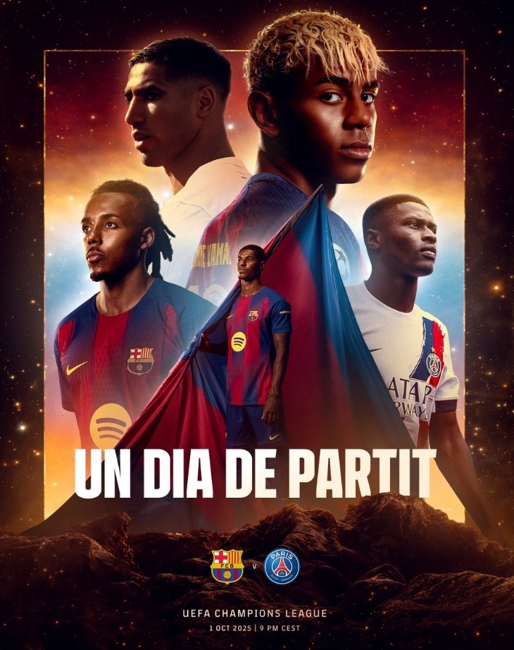 巴萨官推晒海报预热对阵巴黎:拉什福德、亚马尔、孔德出镜
