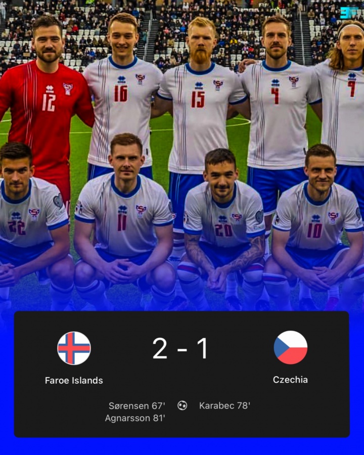 本场比赛,哈努斯-索伦森为法罗群岛首开记录,随后卡拉贝克为捷克扳平比分。可是,只是3分钟后,法罗群岛再度跨越。