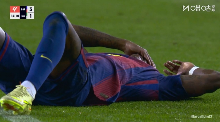 11月03日讯 西甲第11轮巴萨vs埃尔切,比赛第67分钟,拉什福德尝试冲突时与对方顾惜球员相撞,随后他不幸倒地,但裁判并未吹罚犯规。