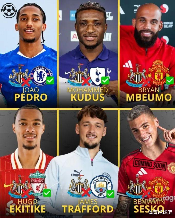 纽卡此前夏窗屡屡受挫,照旧接连错失了8大引援方案,分手是姆贝莫(加盟曼联)、德拉普(加盟切尔西)、若昂-佩德罗(加盟切尔西)、库杜斯(加盟热刺)、埃基蒂克(加盟利物浦)、库尼亚(加盟曼联)、怀森(加盟皇马)和特拉福德(加盟曼城)。