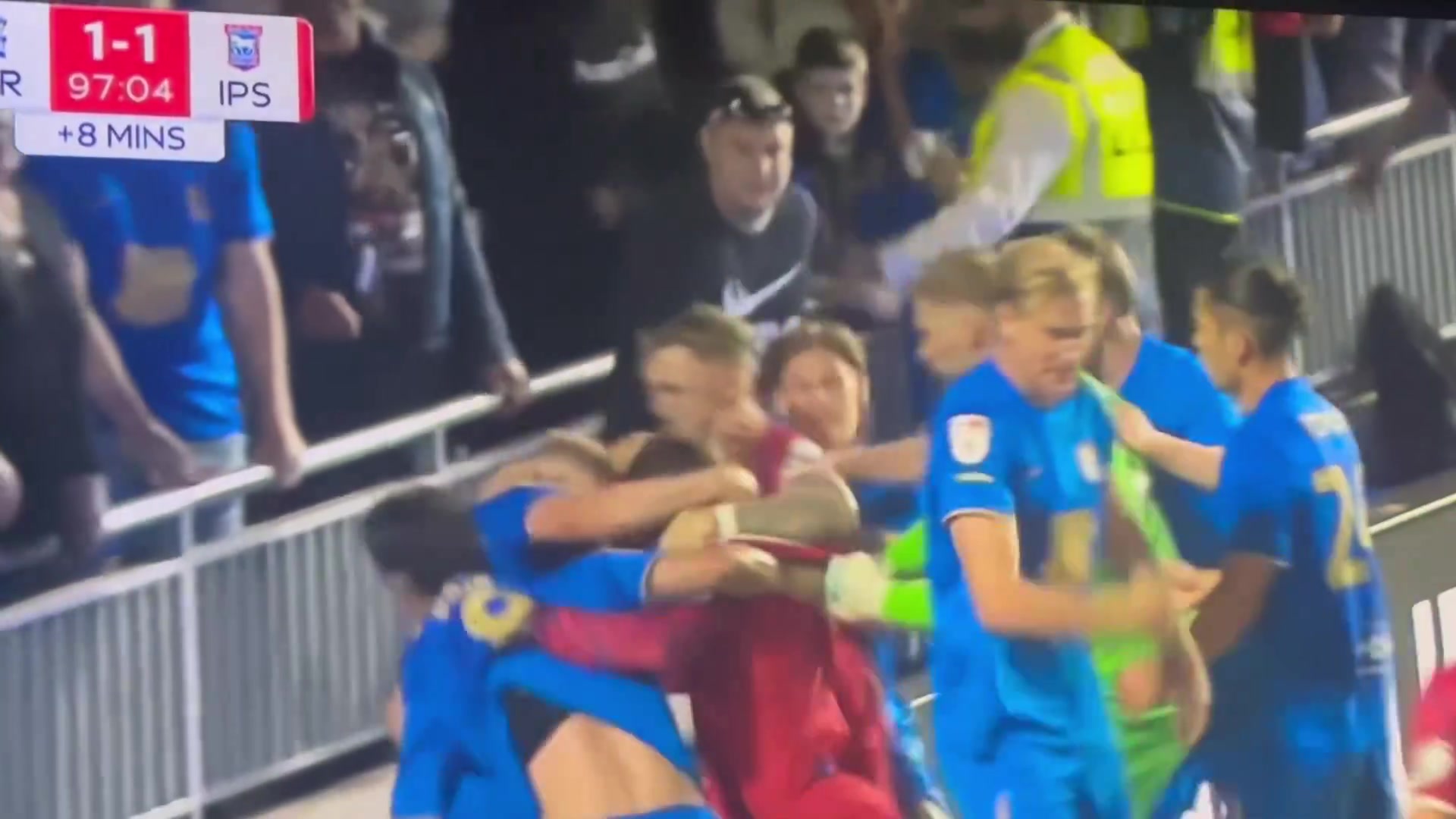 现场可见伯明翰后卫克里斯托夫-卡拉尔冲向伊普斯维奇的康纳-卓别林,两边球员立时蜂拥而至。扭打中两东谈主撞向告白牌,别称球迷翻越护栏企图介入,在推搡球员时被安保东谈主员以橄榄球算作扑倒,责任主谈主员连忙将其带离,伊普斯维奇俱乐部示意将向英足总证据此事。