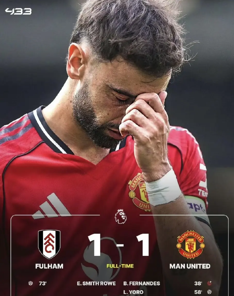 跟着大B哥罚丢点球,曼联1:1被富勒姆逼平,两轮英超仅积1分,B费再度被推优势口浪尖,似乎他是曼联战绩惨淡的罪魁首恶!