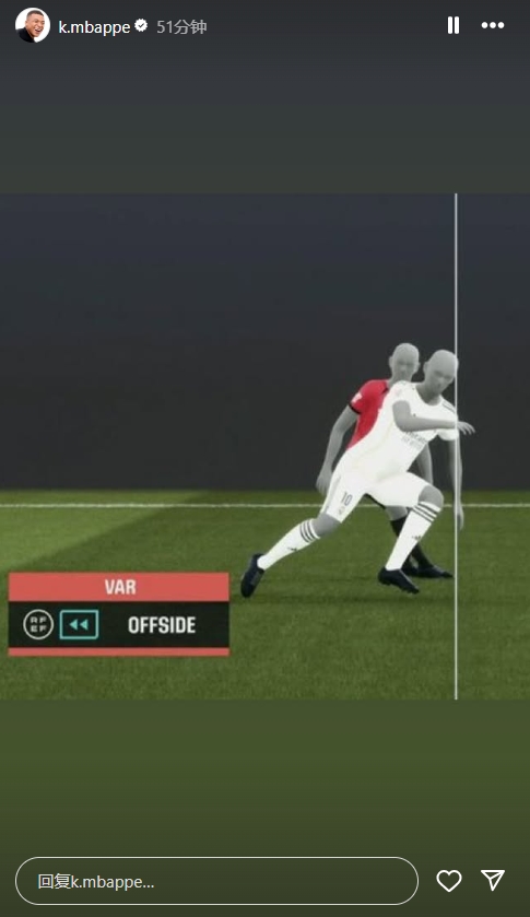 在西班牙当地时间凌晨3点半,姆巴佩在ins上发出我方的越位截图,疑似抒发心累。