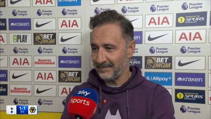 虎扑09月28日讯狼队主帅维托尔-佩雷拉在1-1战平热刺,终于拿分的赛后,收受多家媒体采访。