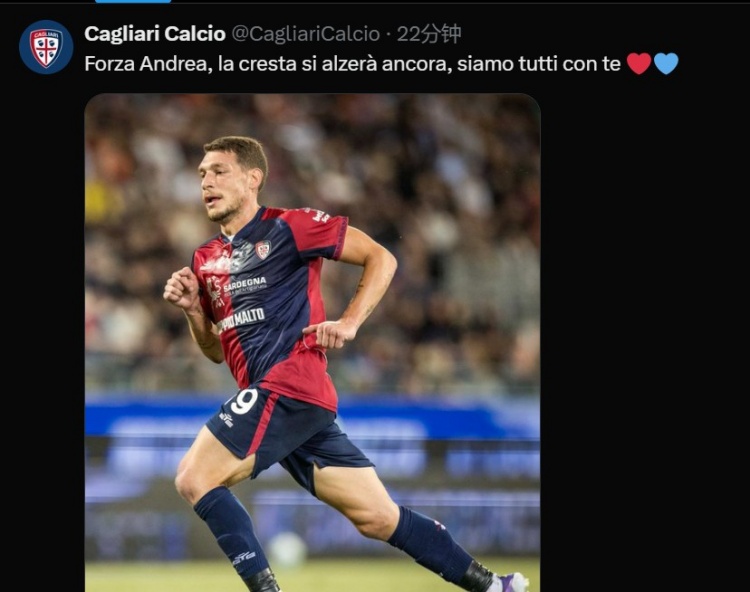 卡利亚里官方:“在昨天比赛中受伤后,贝洛蒂今天接收了会诊性搜检和仪器检测,成果剖判其左膝前交叉韧带扯破。球员将在接下来几天进行进一步的搜检和专业诊治。”