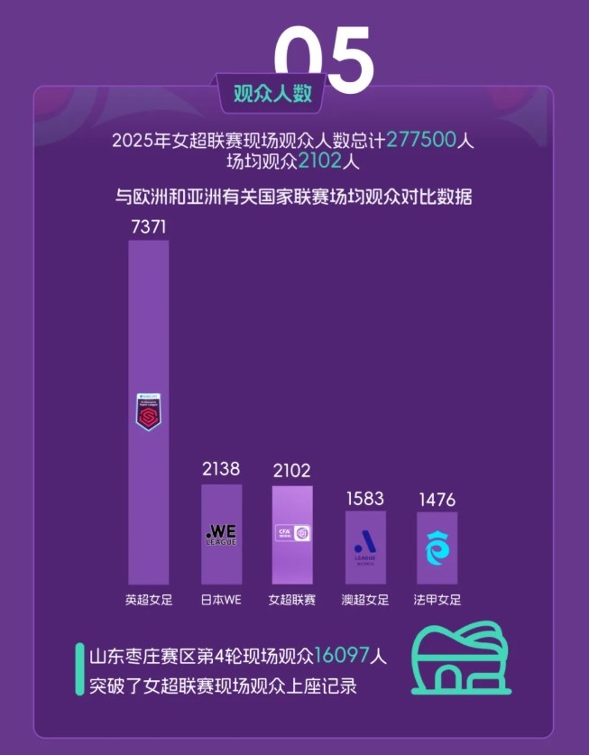 2025女超上座率位于亚洲前哨,仅次于日本WE联赛