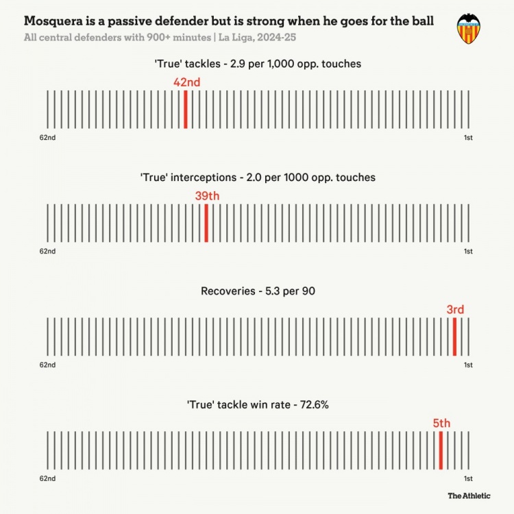 莫斯克拉需要提高的另一个方面是他的制空才略。尽管他身高达到1.88米,但他在上赛季西甲中卫空中抵拒到手率名次中位列62名中卫的第57位。