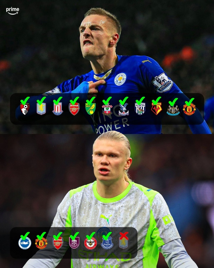 这么一来,英超历史勾通最多轮进球的记载仍然是哈兰德不行企及的说合,这一记载由瓦尔迪服从莱斯特城本事创造。